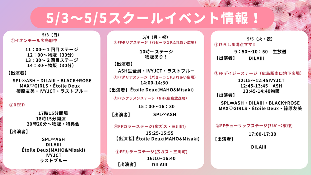 🎤 10:00〜 アクターズスクール広島 Spring LIVE